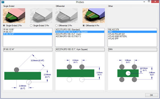 Ein kritischer Punkt beim Coupon-Design ist die richtige Auswahl der Coupon-Anschlusspunkte. Der Speedstack Coupon-Generator bietet Ihnen die Auswahl vordefinierter Rastermaße der Polar IP-Prüfspitzen zum CITS Impedanzmeßsystem. Die Kontaktabstände der gewählten Probe werden automatisch in das Coupondesign eingefügt.