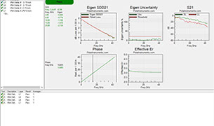 ATLAS VNA displays additional parameters such as Eigen Uncertainty, S21 of the short and long line, Phase and Er