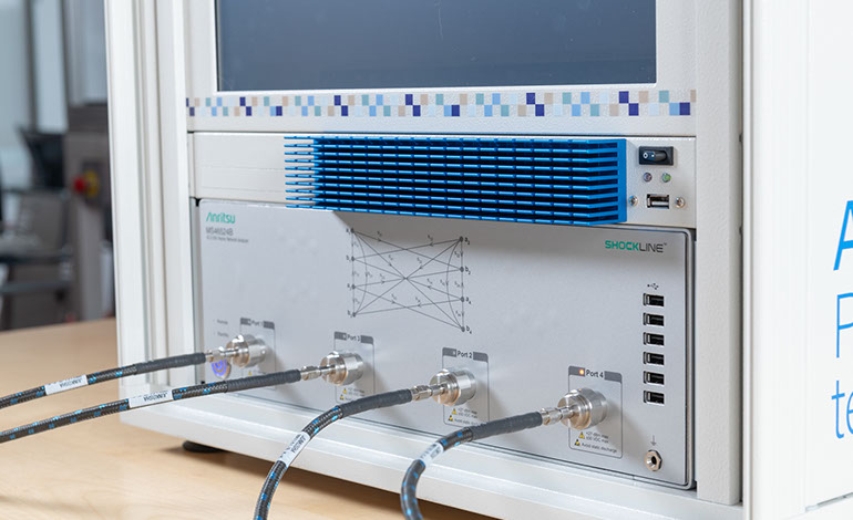 ATLAS VNA interfaces with industry standard Anritsu ShockLine™ MS46524B 43.5GHz 4-Port Vector Network Analyser. The MS46524B 4-Port VNA covers the broadband frequency range from 50 kHz to 43.5 GHz, measuring single-ended and mixed-mode s-parameters. The MS46524B series supports SCPI command programming and uses industry standard LAN communications for remote control in test applications.