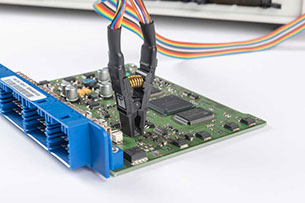 Test integrated components directly in-circuit via the built-in scanner of the GRS200 and a wide choice of test clips for DIL and SOIC packages.
