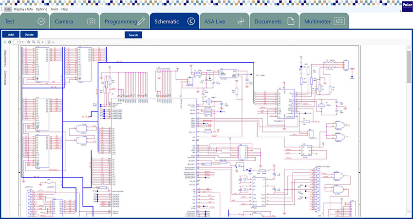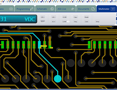 The GRS200 System comprises of Analog-Signatur-Hardware and powerful software providing LIVE-Signature Analysis, Program-Mode, CAD-Data-Viewer, Schematic Diagrams, PCB images, Repair Reports, and an optional Digital-Multimeter Interface.