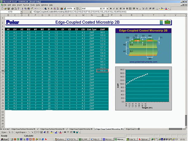 The Field Solvers in the Si8000m allow you accurately to graph impedance against various PCB parameters. The Si8000m Controlled Impedance Design System is a comprehensive controlled impedance design aid which can run stand alone as a Quicksolver, or the underlying engine can be applied directly though the optional Microsoft Excel user interface.