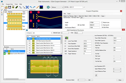CGen ist voll kompatibel mit dem Industriestandard-Field Solver Polar Si8000m und dem Polar Si9000e Field Solver für verlustbehaftete Übertragungsleitungen.