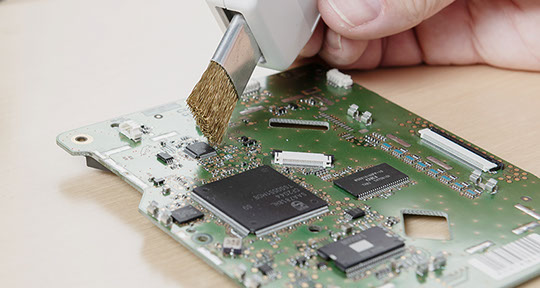 Kontaktierung der Baugruppe mit der Breitseite der leitfähigen Bürste