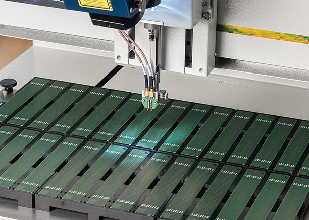Dedizierte Lösung für Leiterplattenhersteller zur automatisierten Serienprüfung von Impedanztestcoupons.