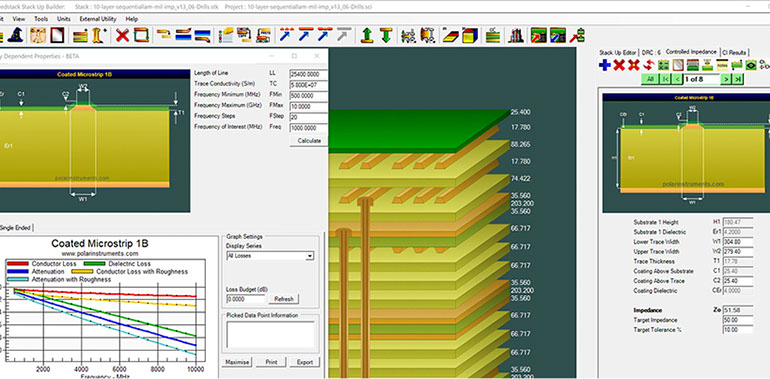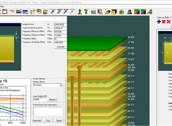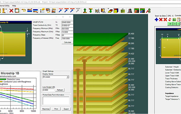 Speedstack Si Design von PCB Übertragungsleitungen und Lagenaufbauten.